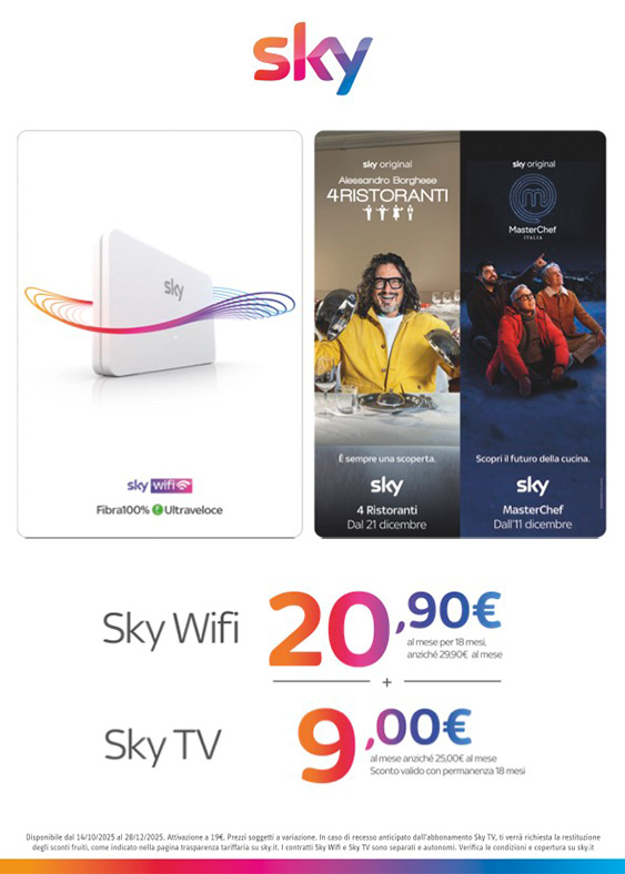 Offriamo supporto personalizzato per nuove sottoscrizioni, potenziamenti del tuo abbonamento, consulenze tecniche e l'installazione della parabola. Scopri tutte le nuove tecnologie Sky direttamente da noi.