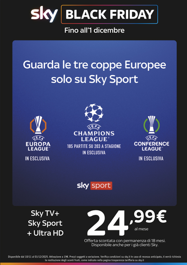 Dal calcio alla UEFA Europa League, dalla MotoGP™ alla Formula 1®, fino a NBA, tennis, rugby e golf: tutto lo sport che ami, in esclusiva e in diretta, per non perderti nemmeno un momento.